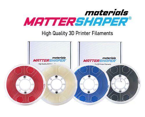 Mattershaper supplies carefully selected filaments for trouble free printing and repeatable, high quality results.